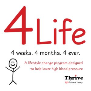4 Life is a lifestyle change program designed to help lower high blood pressure. This 4-month program aims to help you commit to lowering your risk for high blood pressure and live a healthier life. Local experts will talk each week followed by a facilitated group discussion. The program utilizes the American Heart Association’s Check.Change.Control online tracker to self-monitor your blood pressure over the duration of the program. A lifestyle coach will check in and keep you motivated and accountable.