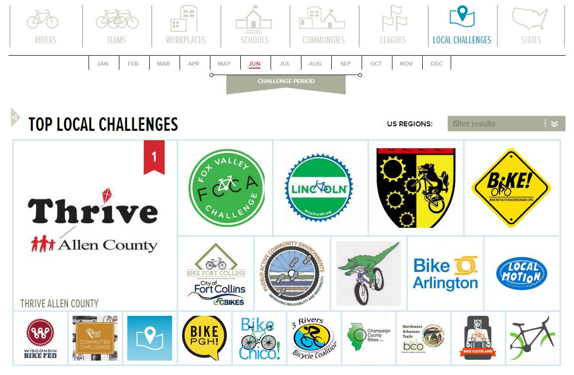 The first month of the 2014 National Bike Challenge is in the books, and our local challenge, hosted by Thrive Allen County, is doing quite well.