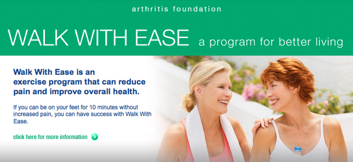 Walk with Ease was developed as a walking program to encourage people with and without arthritis to get started walking and stay motivated to keep active. The program is designed to be done either on your own, or by participating with a group of walkers. The Model is set up as a 6-week program. During that time, participants will work up to walking at least three times a week. The idea is to start at a reasonable amount of time and at a reasonable pace and build up to 30 minutes or more of walking each day you walk. The program also includes 3 other important components: health information, stretching and strengthening exercises, and motivational tools and tips. Online tools are available to support participants that include: a movement tracker, a message board, and automated email service alerting participants when milestones are reached.