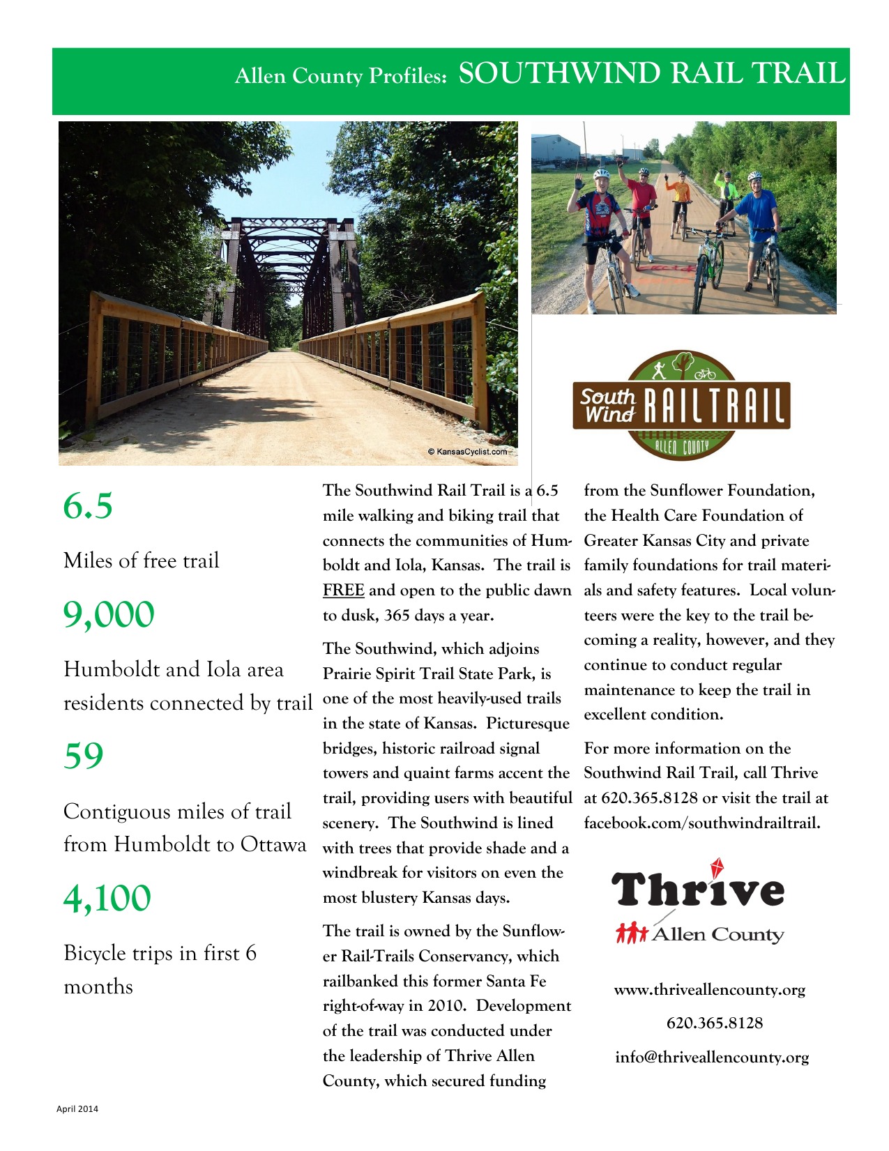 A one-page brochure is available for the Southwind Rail Trail, which provides information about the trail’s background, construction, and usage: